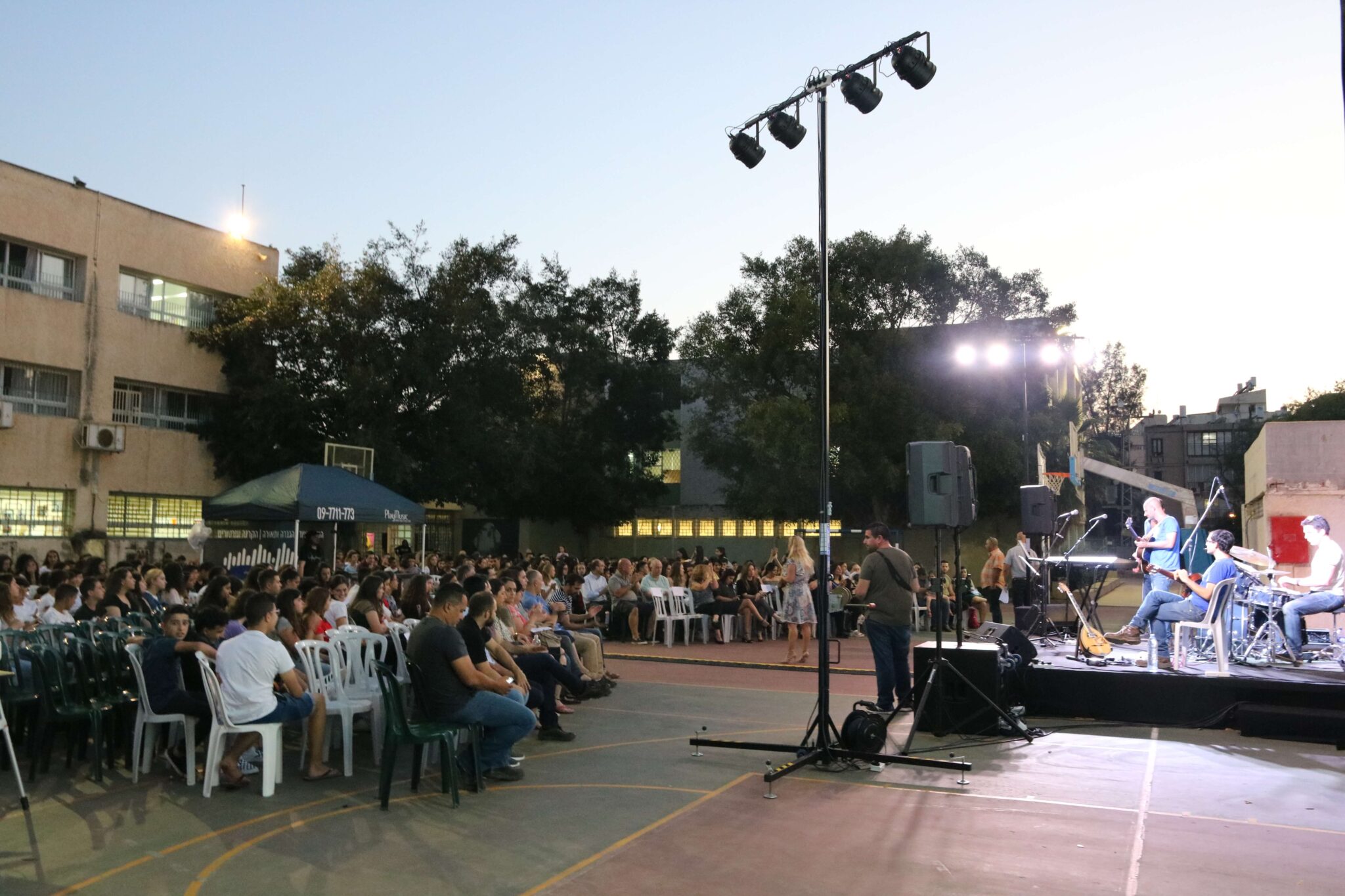 הגברה, תאורה והקרנה ללהקת שירה בציבור על גבי מסך ענק – בית ספר הייטק היי חולון