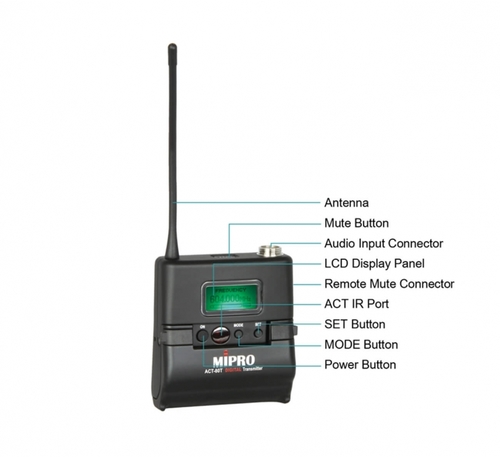 מיקרופון מדונה מקצועי מבית Mipro (מיפרו), משדר עם בקרת סוללות אצבע, צג LCD וקשת בצבע גוף. מדונה מקצועית עם מקלט מקצועי בעל 124 תדרים ללא הגבלת טווח קליטה, זהו המקלט המשוכלל ביותר של חברת “מיפרו”. במקלט קיימת אופציה למציאת תדר נקי ובטוח, לאחר כיוון כל הסאונד והבאלנס ישנו כפתור במקלט שבלחיצה אחת סורק את החלל ומגדיר לנו את התדר הכי נקי והכי בטוח למדונה, ללא צורך בחיפוש תדר והתעסקות עם המקלט. מדונה זאת מתאימה לעבודה מקצועית בהופעות חיות ובתזוזה מסיבית. המקלט והמדונה מגיעות בתוך קייס מחווט ועמיד. מקלט מקצועי עם בקרת 124 תדרים (המקלט המשוכלל ביותר מבית מיפרו), דגם ACT 727. מדונה – משדר עם בקרת סוללה ותדר צג LCD וקשת בצבע גוף, דגם ACT 7T.