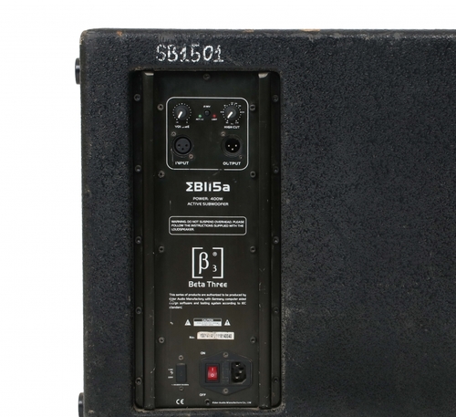 סאב מוגבר מבית BETA-3, בעוצמה של 800 וואט, גודל הסאב הוא 15".