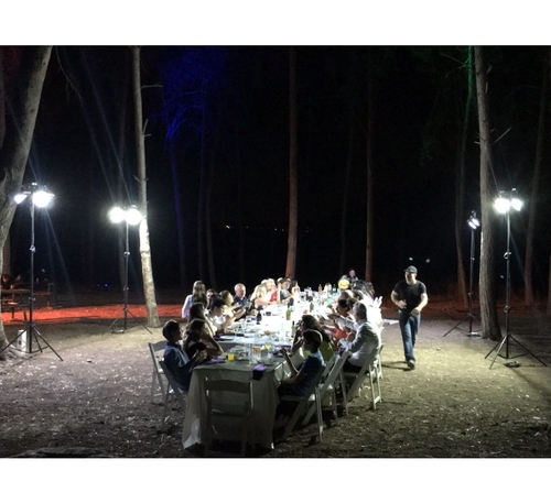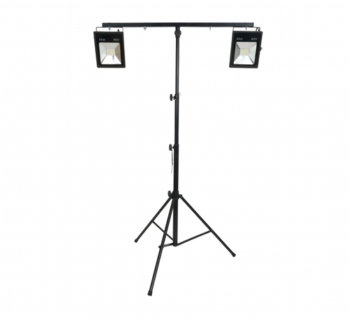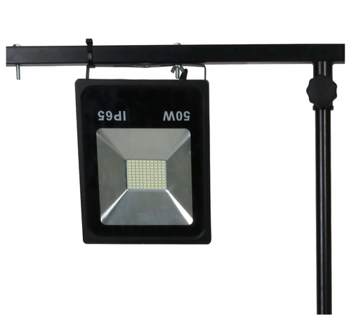 שני פרוז’קטורים לד חזקים בעוצמה 50 וואט (צבע אור: לבן קר), מגיע עם סטנד תאורה שעולה לגובה 3.25 מטר + טי בר לתליית עד 4 פנסים.