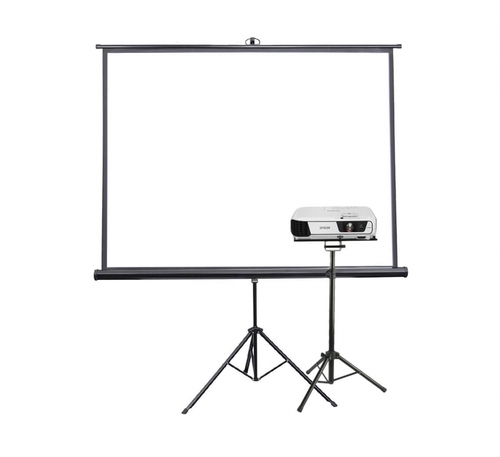 מקרן ממשפחת המותג העולמי EPSON מדגם EB-X31 בעל תמונה בהירה ועשירת צבעים. המקרן פשוט לתפעול, שליטה ידנית על הזום והפוקוס. מתאים לשימוש קריוקי, צפיה של סרט, תוכנית בטלוויזיה, מצגות עסקיות/ משפחתיות וכו’. מגיע עם כבלים HDMI או VGA באורך 5 מטר – לחיבור מחשב נייד אורח. יתרון גדול של המקרן הוא שניתן להקרין מהצד של המסך ולתקן את התמונה ללא עיוות (הרי שמקרן סטנדרטי חייב להיות מקביל למסך כדי שהתמונה תהיה ישרה, מה שלא כך כאן) כלומר תיקון זווית הקרנה, הגדרה מאוד שימושית! מסך הקרנה של החברה הטובה בעולם למסכי הקרנה DRAPER. מסך הקרנה חזק ויציב, מגיע עם חצובה ריצפתית ומנוף לכיוון גובה ההקרנה. על גבי המסך ישנה ידית נשיאה לשינוע המסך בקלות ובנוחות. גודל המסך הוא 180X180 ס"מ.